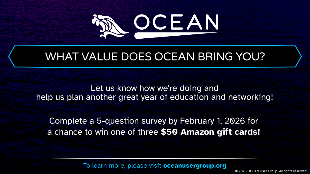 Next Up at OCEAN - Please let us know what type of online, in-person, and in-depth training you want! What topics are you most interested in this year? Complete the brief survey by Sunday, February 1, 2026, for a chance to win one of three $50 Amazon gift cards.
